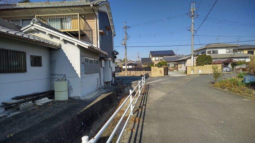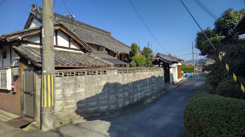 集落の西側には、南北に斑鳩と飛鳥を結んだ古代からの街道・太子道(筋違道)が通っています。